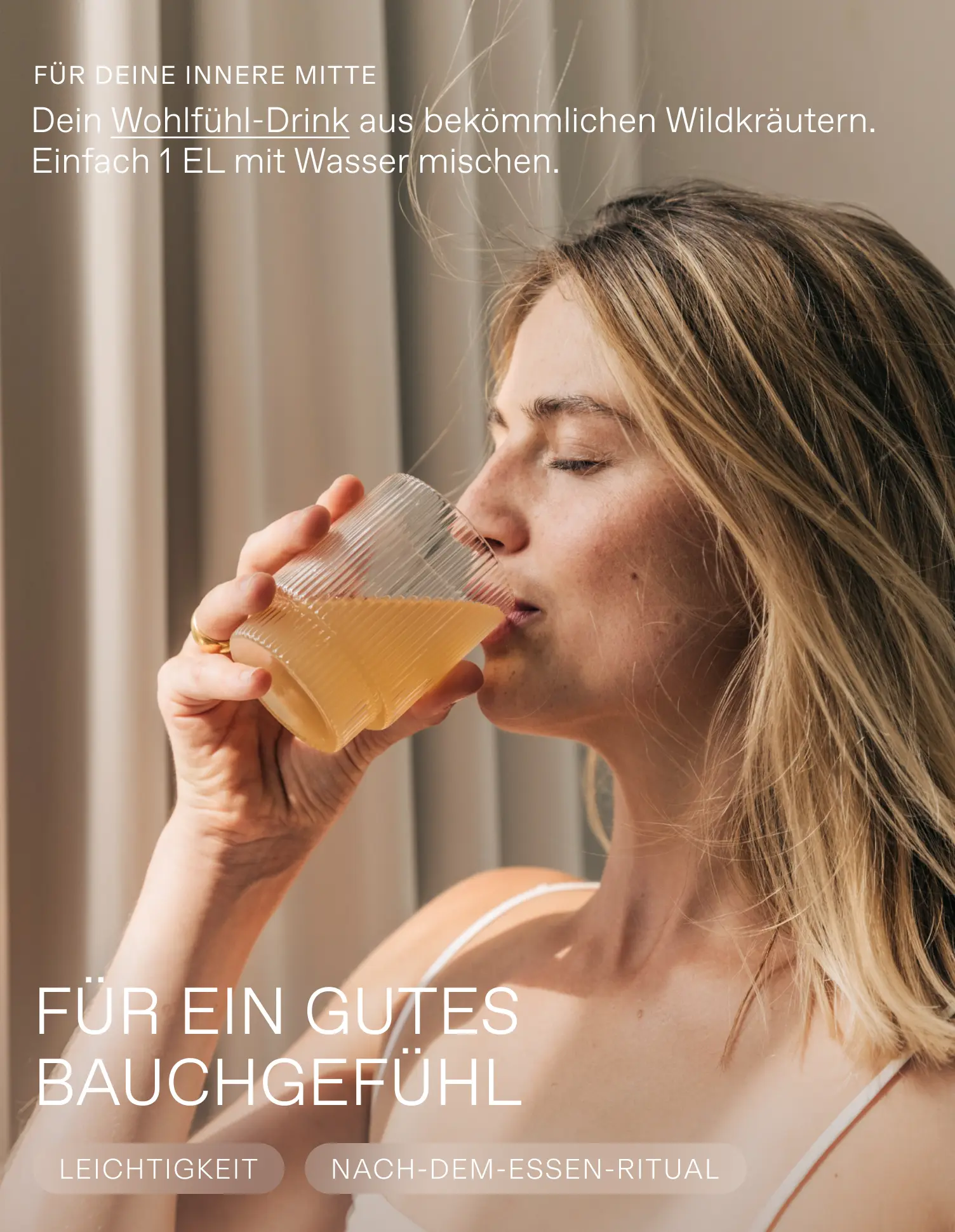 Unser ganzheitlicher Impuls: Wir lieben unsere Sorte Balance als Morgenritual mit lauwarmem Wasser gemischt. Dabei atmen wir bewusst zehnmal tief in den Bauch. Und genießen das gold-gelbe Elixier Schluck für Schluck. Wusstest du, dass lauwames Wasser die Verdauung ankurbelt? So kann dein Frühstück besser verdaut werden.