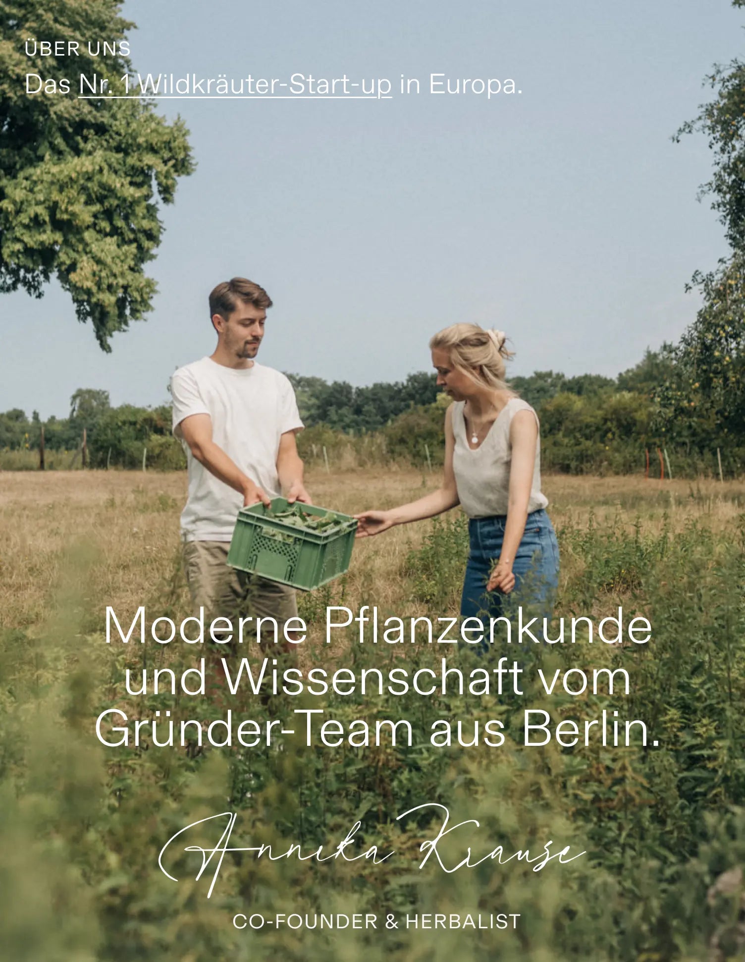 Wildkräuter: In diesem leckeren Bio-Kräuterauszug sind Kamille, Schafgarbe, Pfefferminze und Wiesenkümmel enthalten.