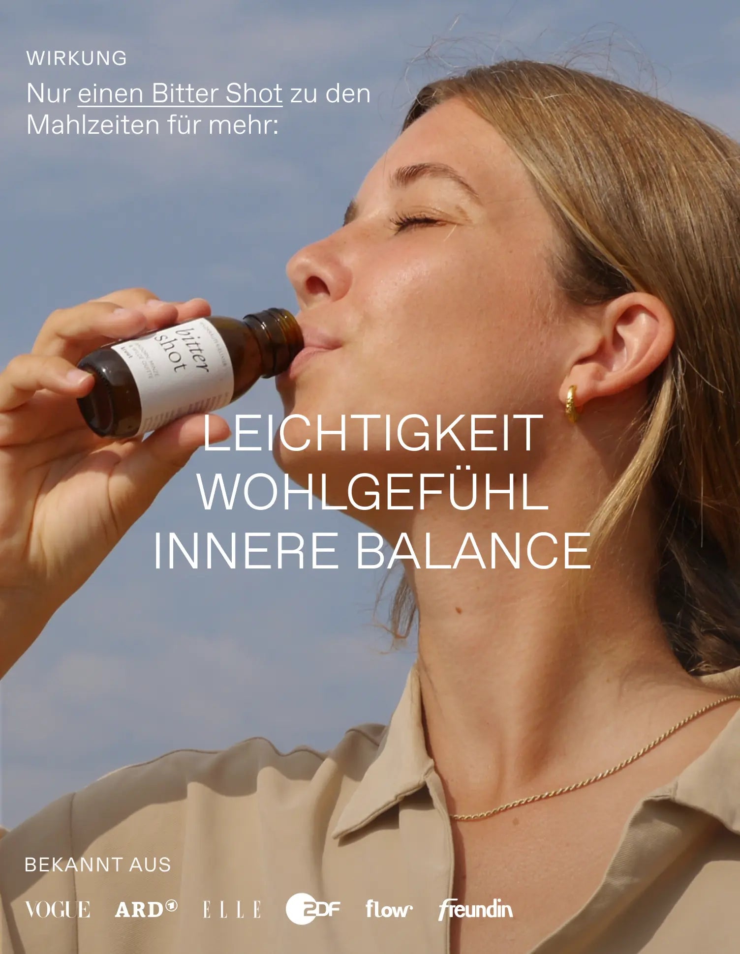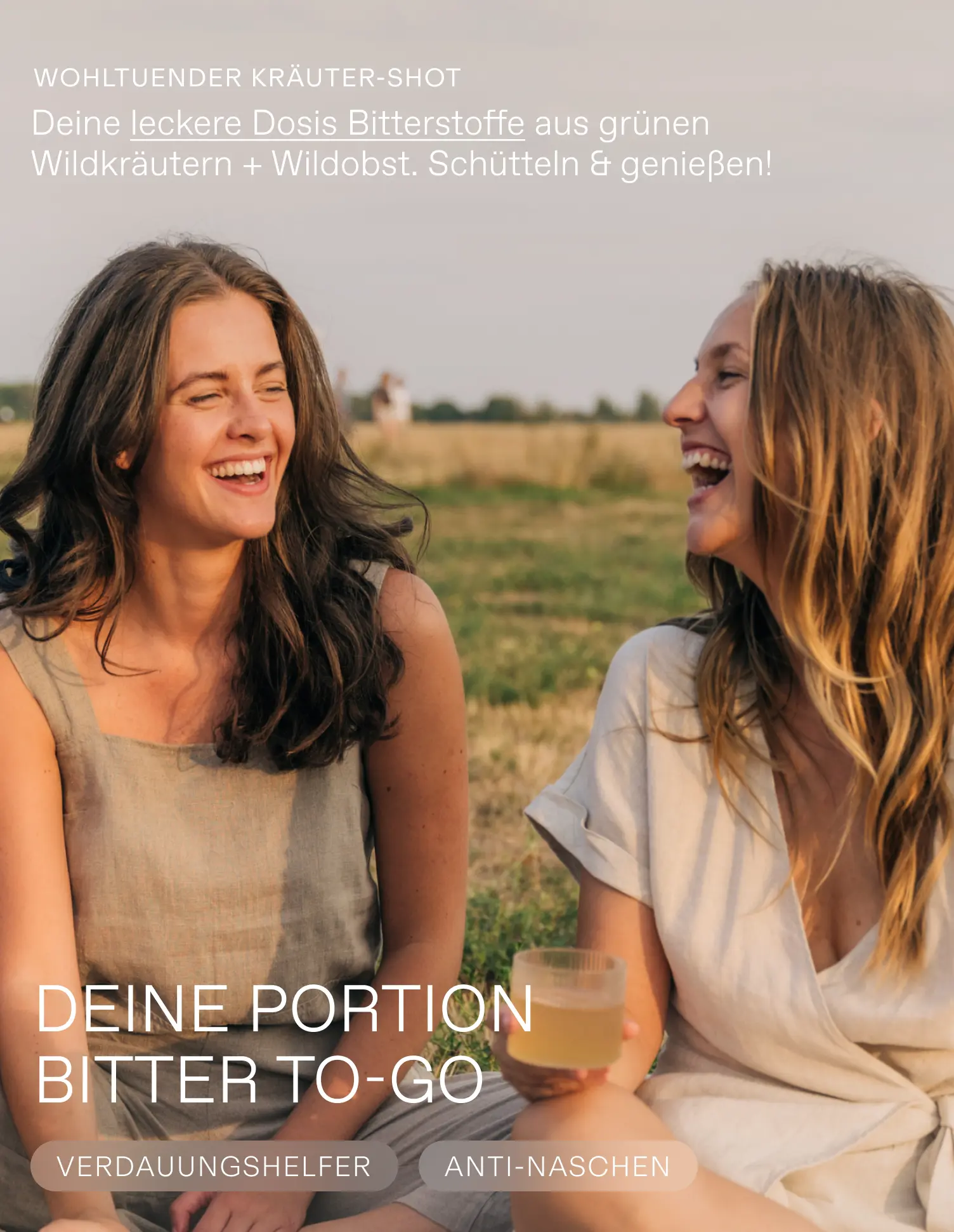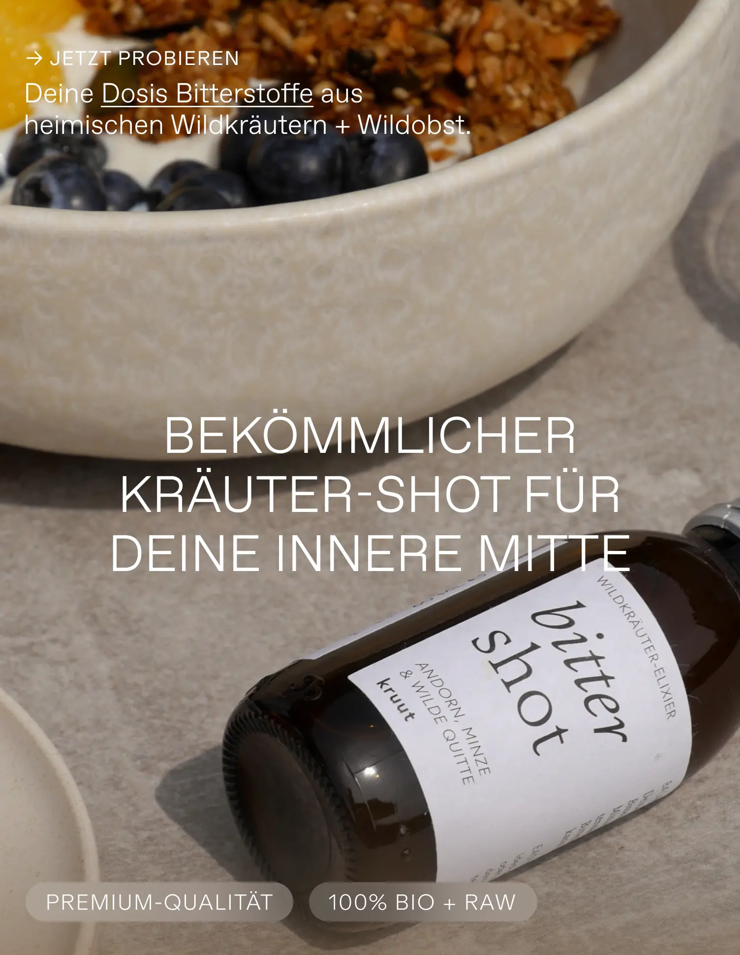 - Wildkräuter-Shot mit wertvollen Bitterstoffen. Fruchtig-herbe Erfrischung zum Essen – Adios Naschen!