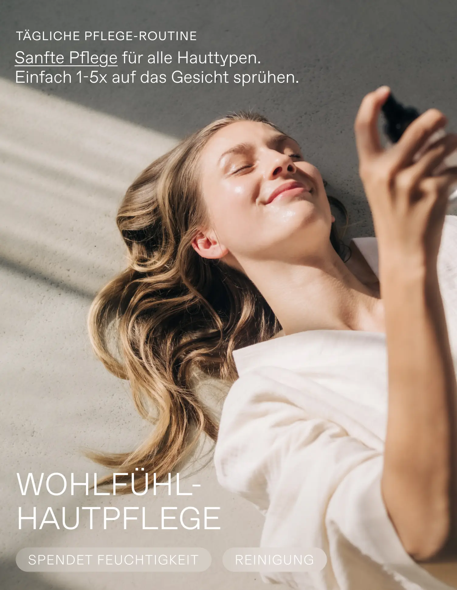 Anwendung als Hautpflege: Morgens und abends als Toner nach der Gesichtsreinigung aufsprühen. Oder zwischendurch auf die Haut als aktivierender und gleichzeitig ausgleichender Feuchtigkeitskick.