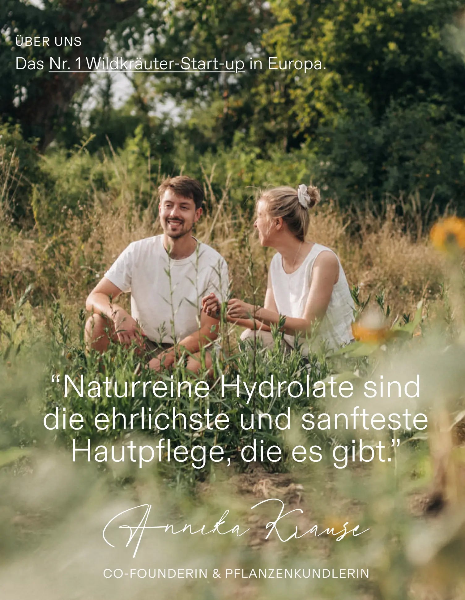 Unsere Hydrolate sind naturbelassen und enthalten nur das reine Blütenwasser. Sie werden traditionell destilliert. In dieser Urform genutzt sind Pflanzenwasser die natürlichste und ehrlichste Hautpflege.