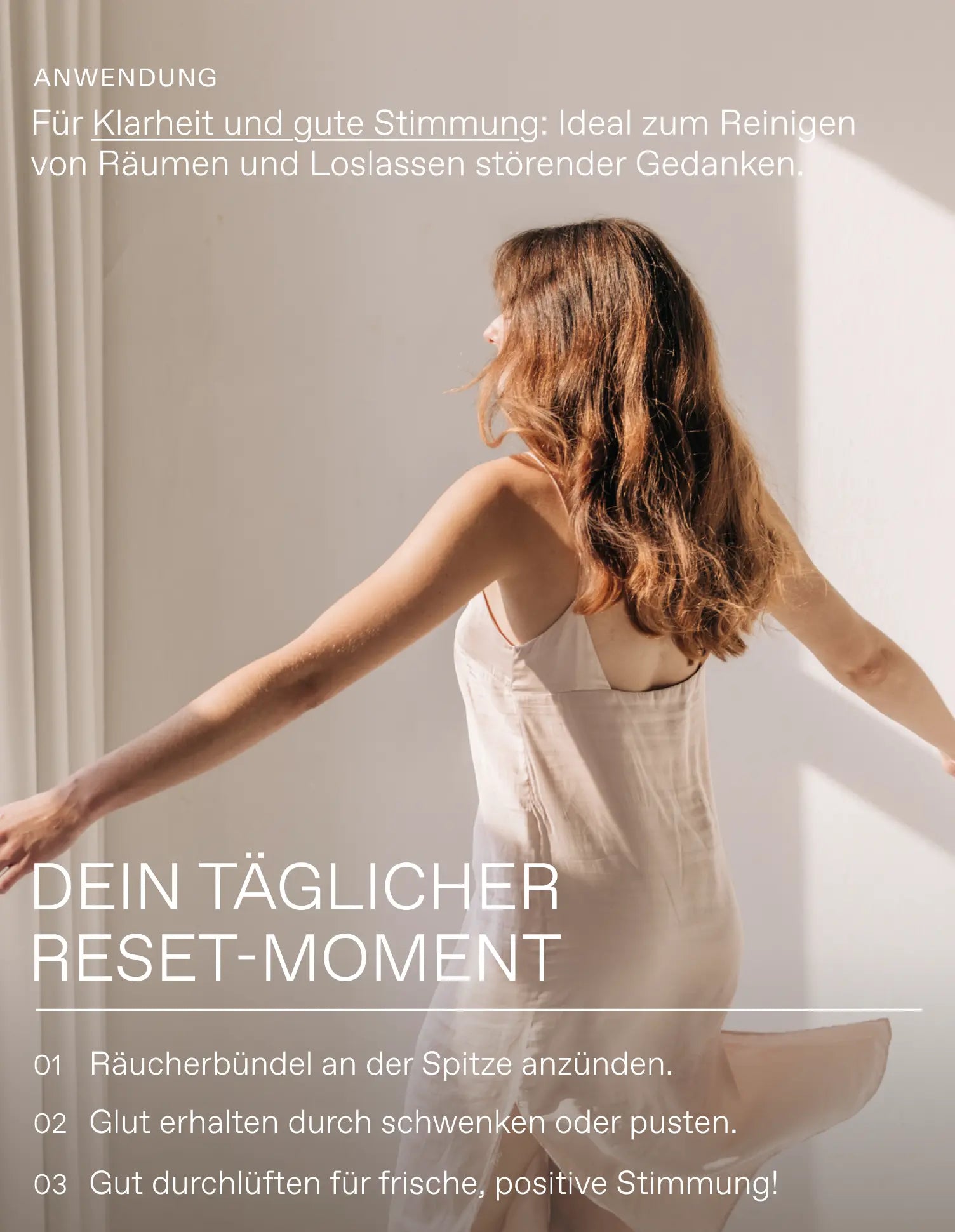 - Reinigende Räucherpflanze. Bereinigt negative Einflüsse und trägt zu einem gesunden Raumklima bei.