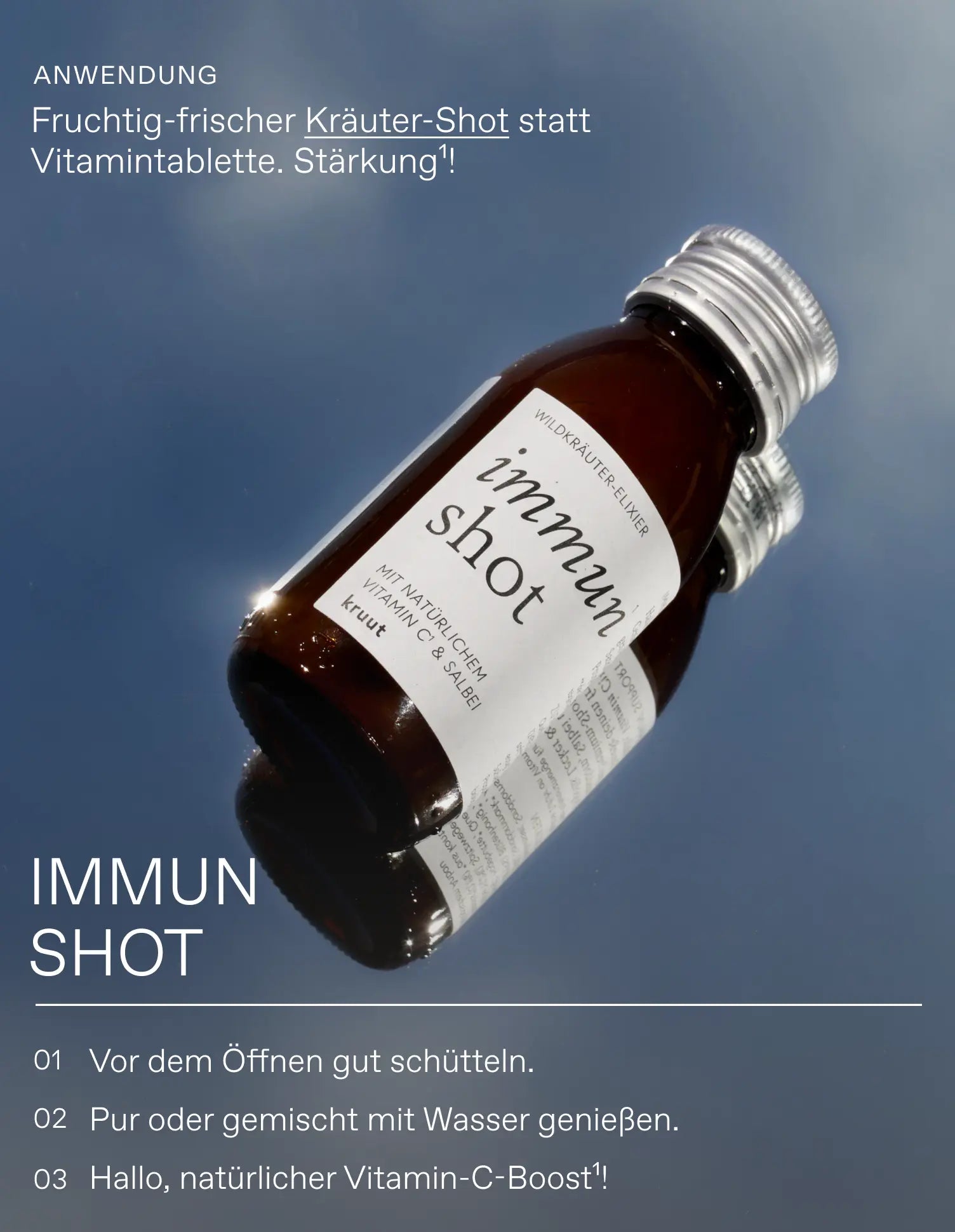 - Dein Wildkräutershot für Immun-Support¹. Natürliche Unterstützung mit Vitamin C zur normalen Funktion des Immunsystems¹.